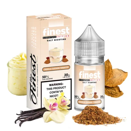 The Finest Vanilla Custard Tobacco Salts 30ml offers a rich and indulgent vaping experience, blending the smooth, creamy flavor of