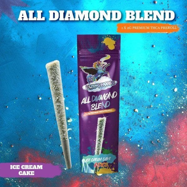Indulge in luxury with Flying Horse All Diamond Blend 2g Premium THCA Prerolls. Each preroll is a testament to excellence, meticulously crafted with premium THCA diamond blend for an unparalleled smoking experience. Packaged in a display of 10, these prerolls offer convenience and sophistication, perfect for discerning enthusiasts seeking the pinnacle of cannabis enjoyment.