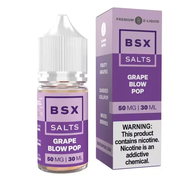 Glas BSX Salts Grape Blow Pop Salts 30ml delivers a nostalgic and flavorful vape experience, recreating the delicious taste of a sweet, fruity grape lollipop with a chewy candy center. This nicotine salt e-liquid blends the rich, juicy flavor of ripe grapes with a sugary, candy-like sweetness, making it a perfect choice for those who enjoy fruity, dessert-inspired vapes. The smooth throat hit provided by the nicotine salts ensures a satisfying experience for pod system and MTL (mouth-to-lung) users. Whether you’re craving a sweet, fruity vape or seeking a fun and flavorful all-day vape, Glas BSX Salts Grape Blow Pop Salts offers a delightful, candy-inspired flavor that will transport you back to childhood treats.
