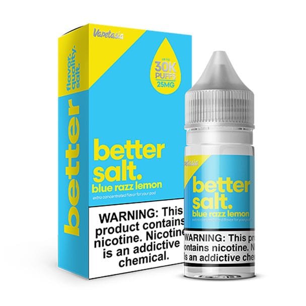 Blue Razz Lemon – 25mg – Better Salt By Vapetasia – 30ml is bursting with tangy blue raspberry flavor topped with refreshing lemon zest.